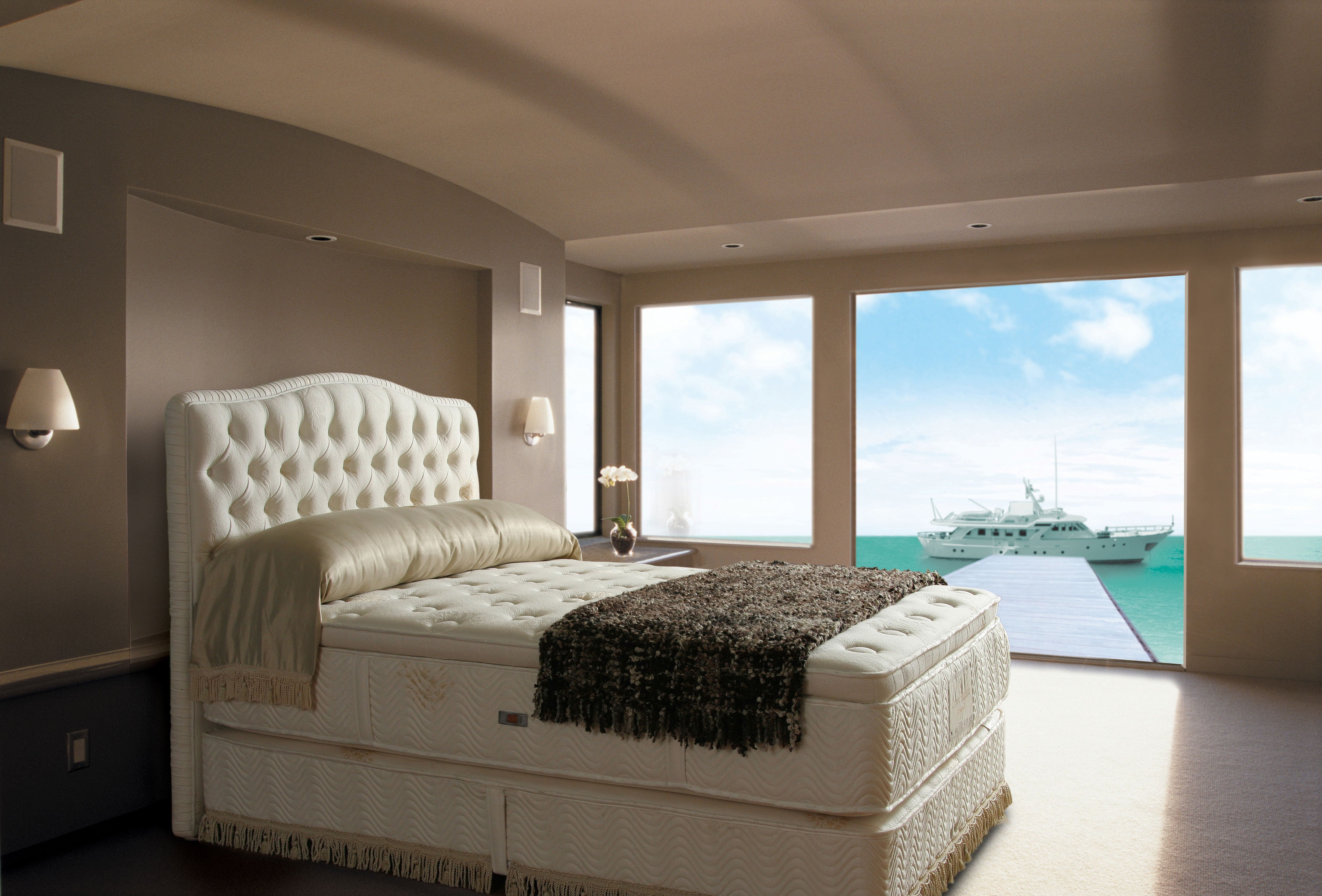 雙層袋裝保背健連鎖彈簧:獨特雙層的「袋裝保背健連鎖彈簧」,特色在於其將「保背健連鎖彈簧」合二為一,以人體工程學原理,設計出導向式金字塔型連繫組合,將一條精鍊而成的高碳鋼鋼線編織之彈簧封入彈簧套內,除提供由頭到腳連貫均勻的承托外,其導向式設計更不會因您身體的轉動而影響睡伴。(部份型號為單層彈簧。)