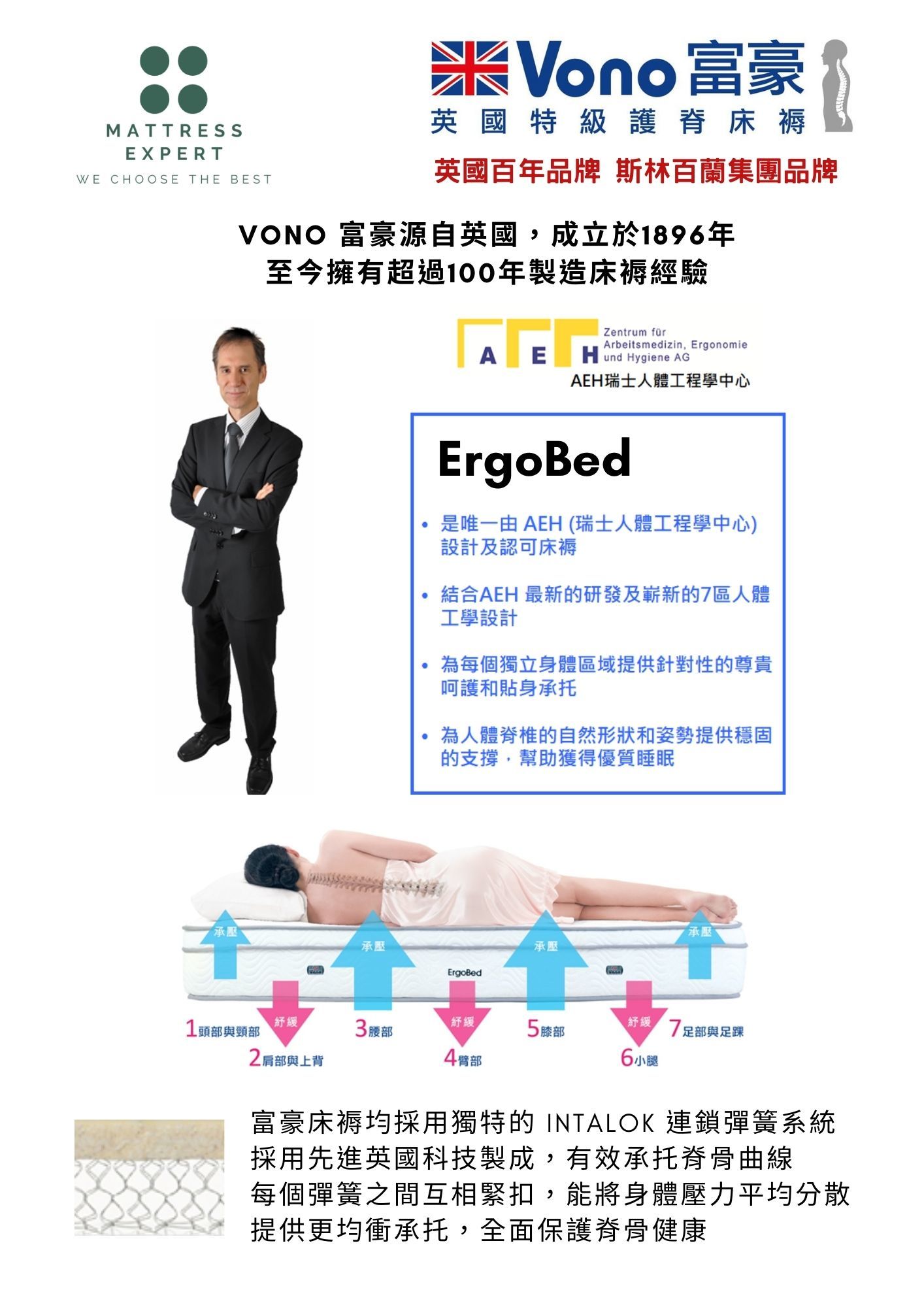 採用 800個 INTALOK 護脊彈簧, 分散壓力 不影響睡伴酣夢